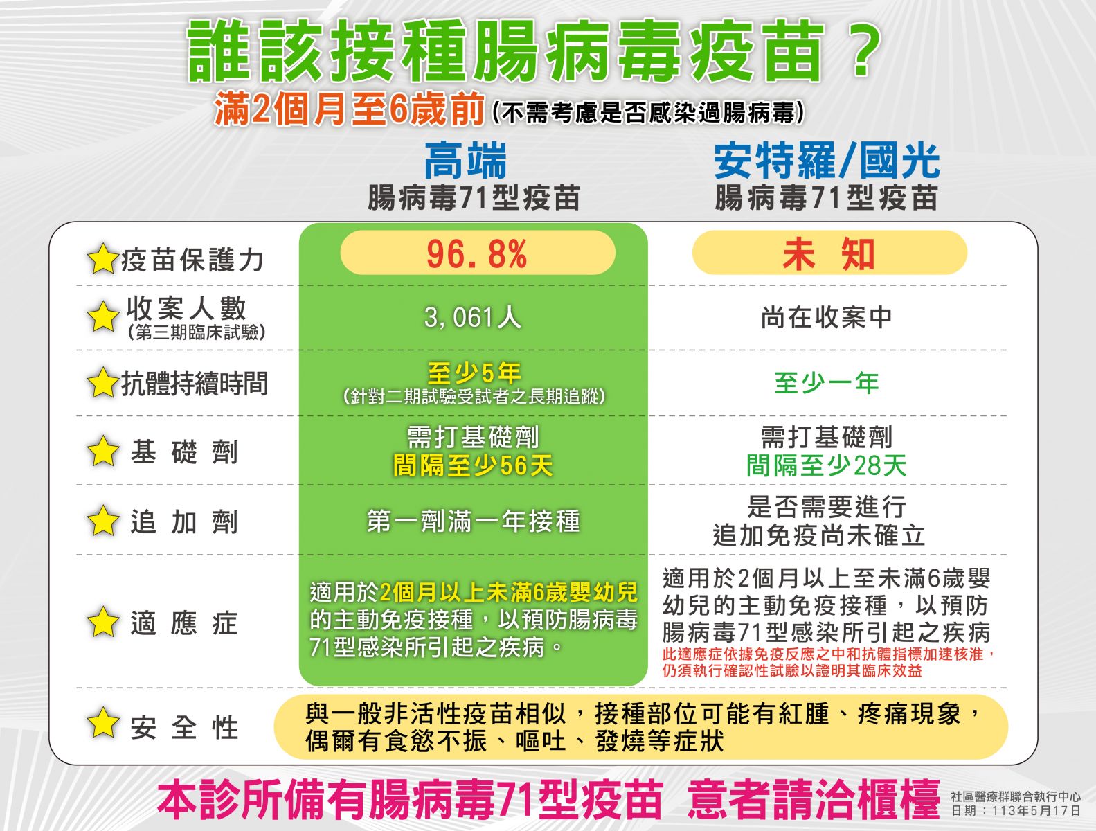 本院備有腸病毒71型疫苗,意者請洽櫃檯
