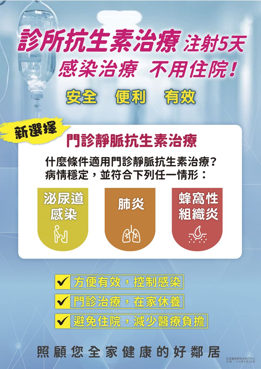 - 【✧新選擇】感染治療不用住院!門診也能打抗生素