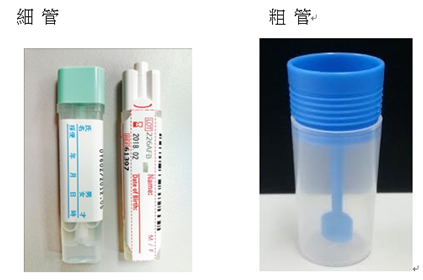 檢查前一天或檢查當天早上: 採集糞便檢體 (1)細管:請於健檢前ㄧ天收集。請輕輕拉起採便棒→採便棒從糞便表面輕劃一個『井』 字(或是不同部位插入幾下),溝槽填滿即可→再將採便棒輕輕放入採便器內(勿再開啟)!請放置冰箱或陰涼處,並請於健檢當天帶至健檢中心。(採便器內有要水乃屬於正常現象) (2)粗管:請於健檢前三天收集。健檢前三天請勿酗酒、勿食生肉、含血及含鐵的食物(波菜、蘋果、櫻桃、葡萄、豬血、鴨血、動物內臟(豬肝、雞肝、…)、鐵劑、維他命。留取大便檢體約拇指般大小,裝進收集盒中。請放置冰箱或陰涼處,並請於健檢當天帶至健檢中心。 |